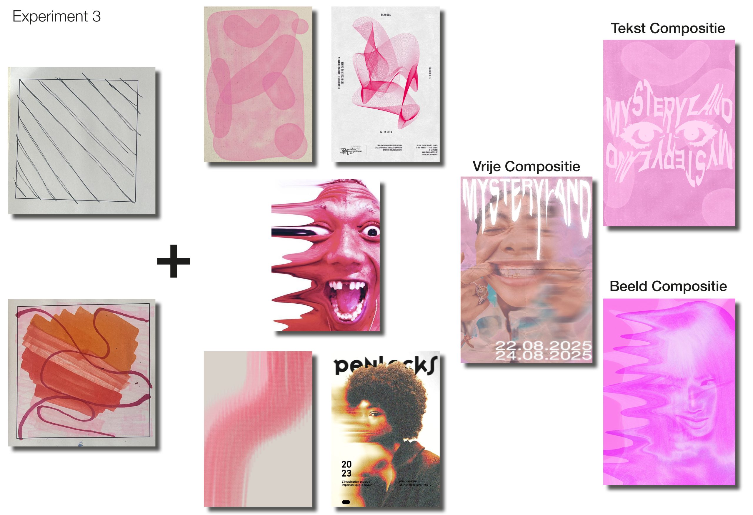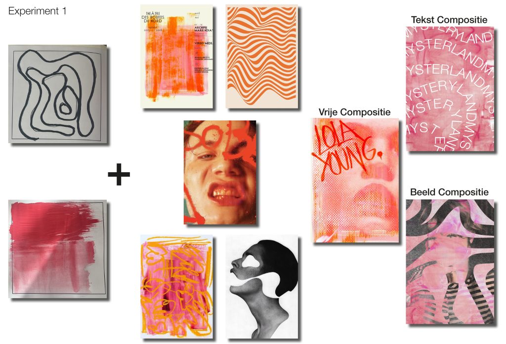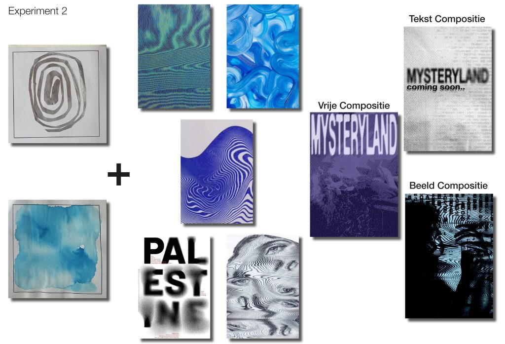 Dit was al het werk voordat ik echt kon beginnen met de poster en de app. Ik heb de stijl van experiment 3 doorgevoerd en heel veel dingen uitgeprobeerd. Ik ben erg tevreden met het eind resultaat, het is overzichtelijk maar toch surrealistisch.