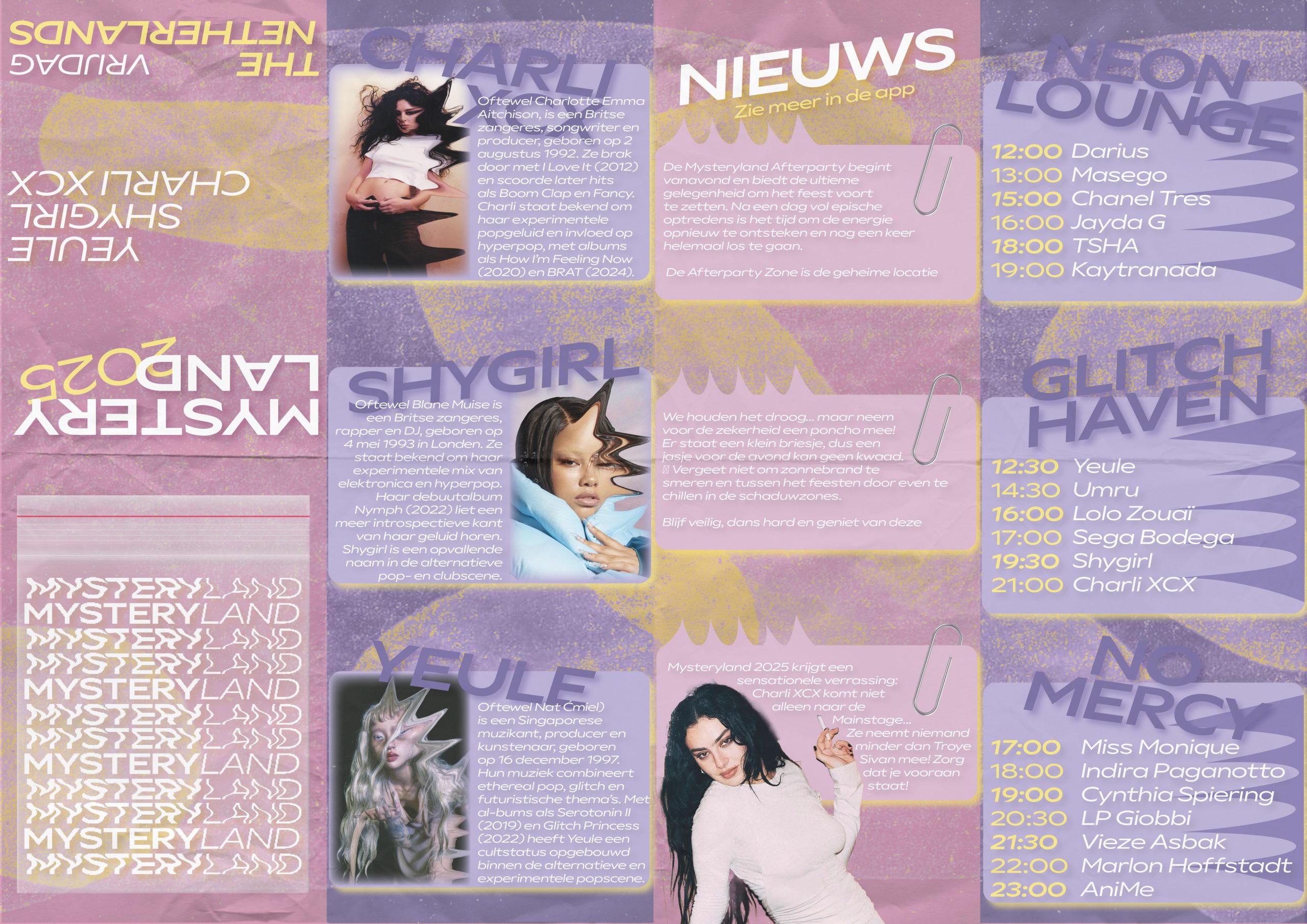 Ik heb voor Mysteryland een nieuwe huisstijl mogen ontwerpen voor hun folder en app. In dit project heb ik voornamelijk gebruik gemaakt van Adobe Indesign en Adobe Photoshop en Figma.